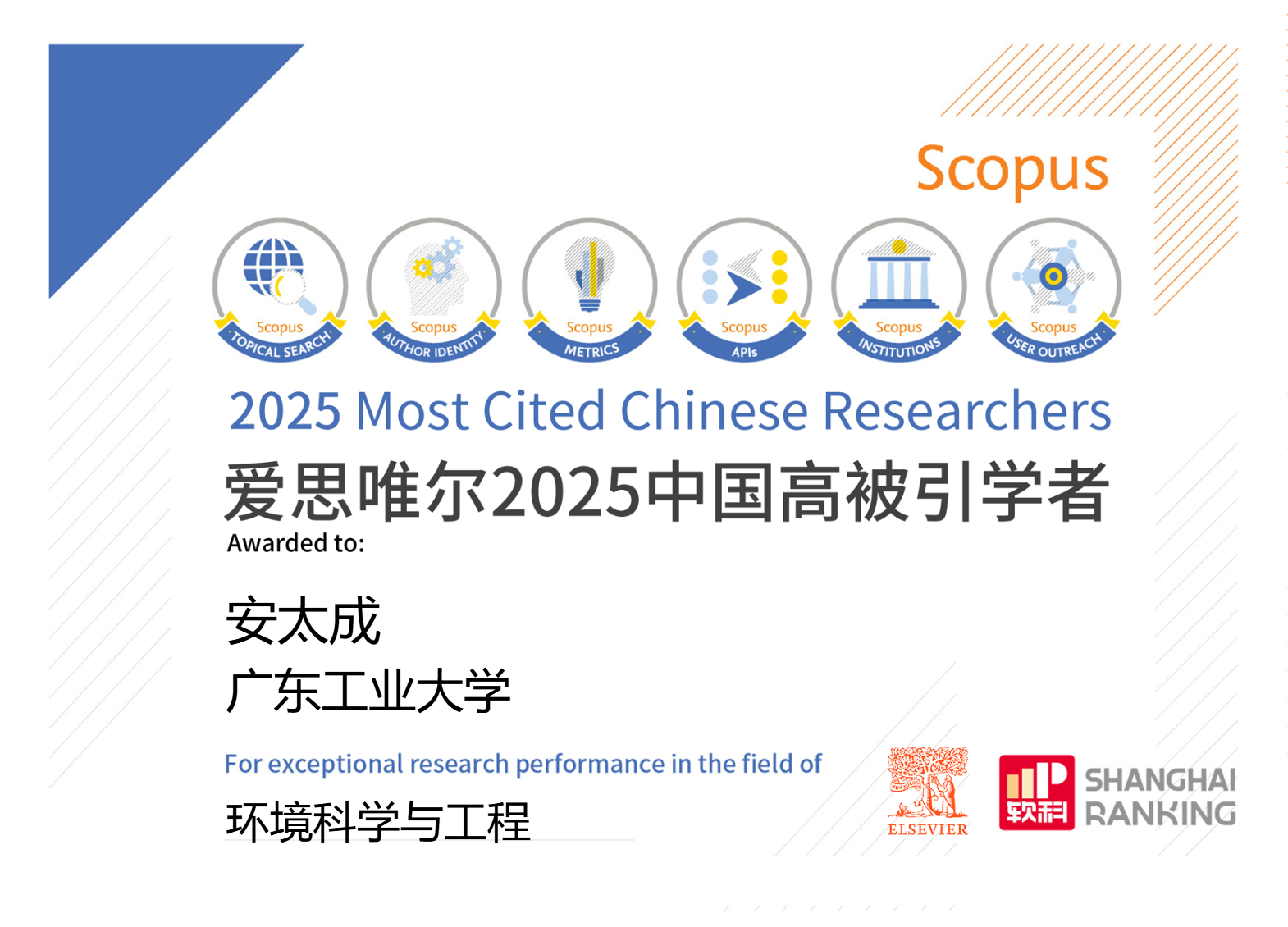 我室主任安太成教授连续12年入选爱思唯尔环境科学与工程领域中国高被引学者榜单